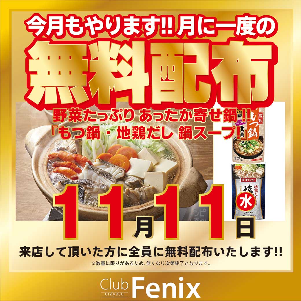 ClubFenix浦安店_11/11(水)無料景品配布